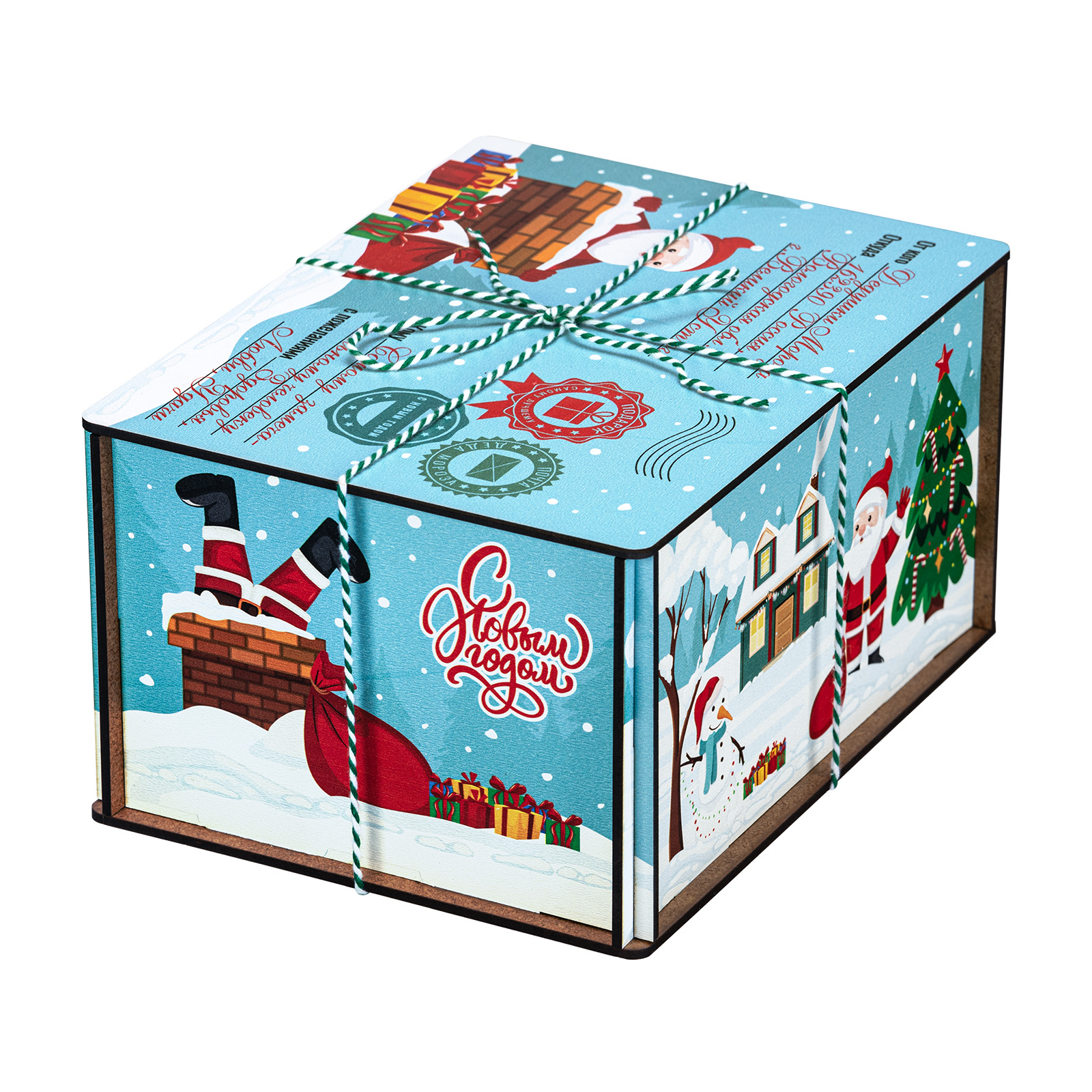 Новогодние сладкие подарки в деревянных упаковках уже не первый год пользуются высоким спросом у покупателей. Это не просто так - такие подаркаи отличаются оригинальностью и практичностью. Набор “Мятная ночь” не исключение. Это небольшая деревянная коробочка с виду напоминающая бандероль. Упаковка отличается необычным приятным цветом, который прекрасно сочетается  с разннобразными новогодними рисунками, помещенными со всех сторон. Сверху подарок перетянут удобной ручкой-шнурком. Набор состоит из килограмма разнообразных кондитерских изделий и небольшой памятный сувенир в виде лошадки - символа 2026 года.