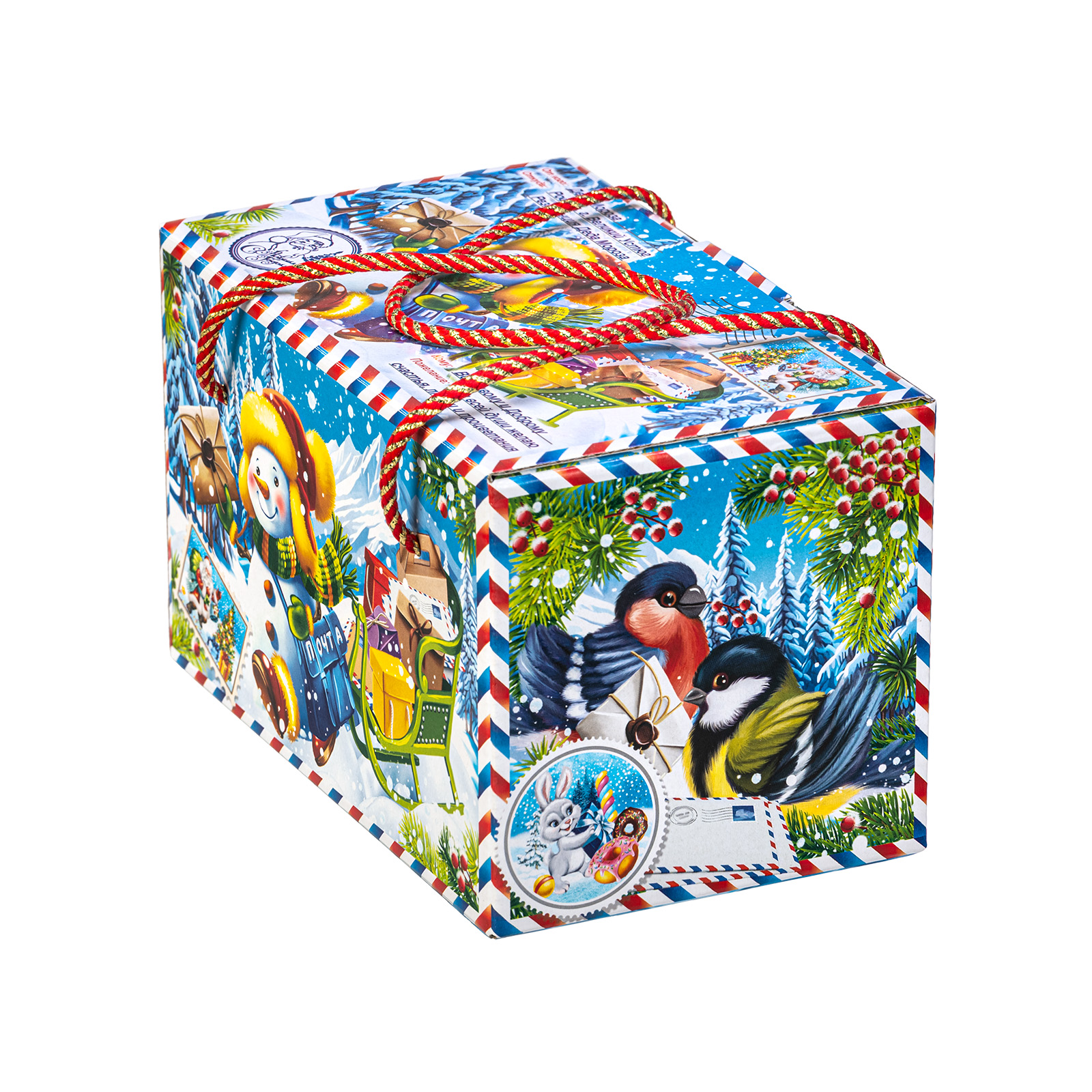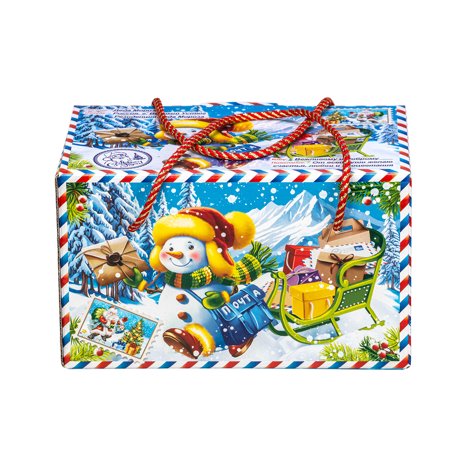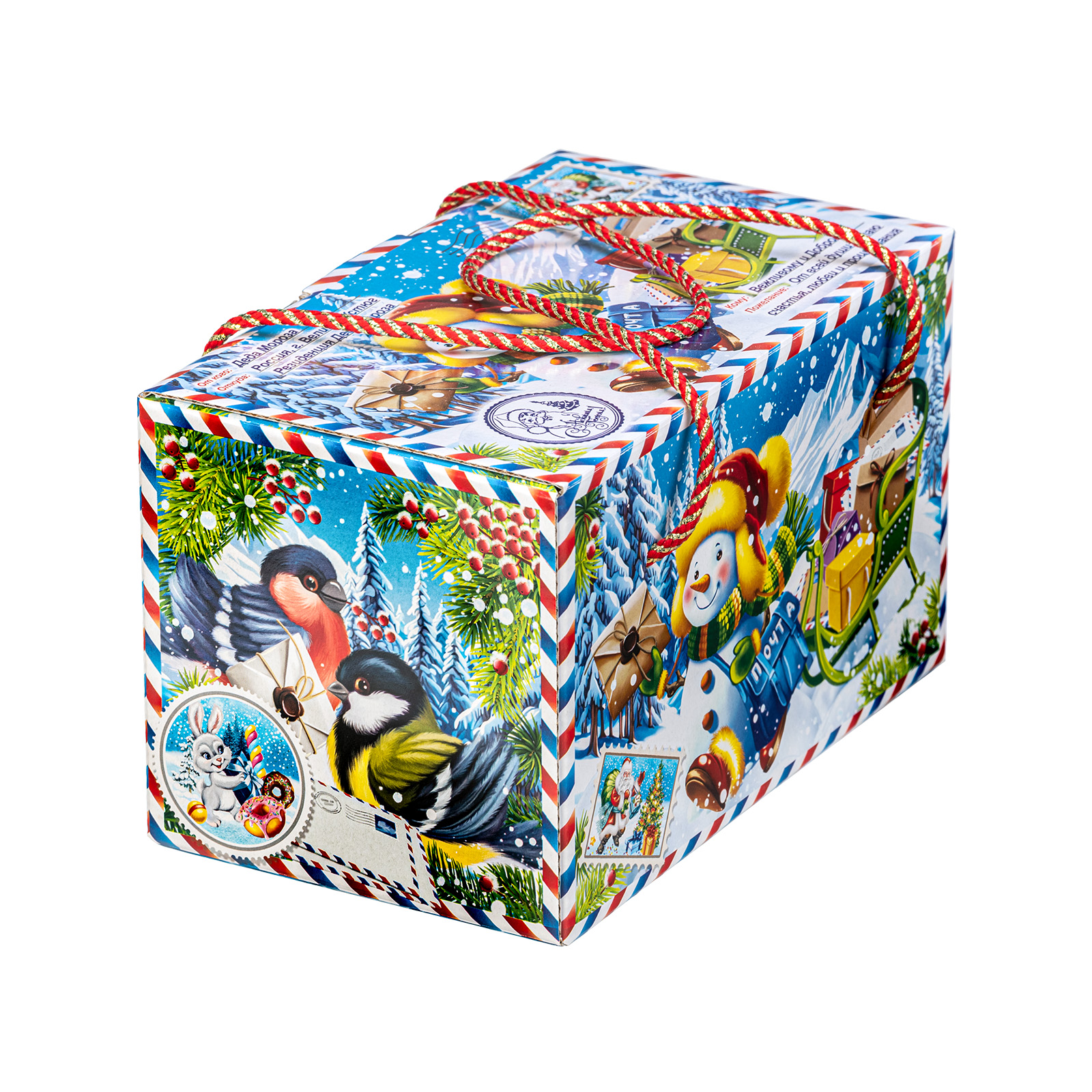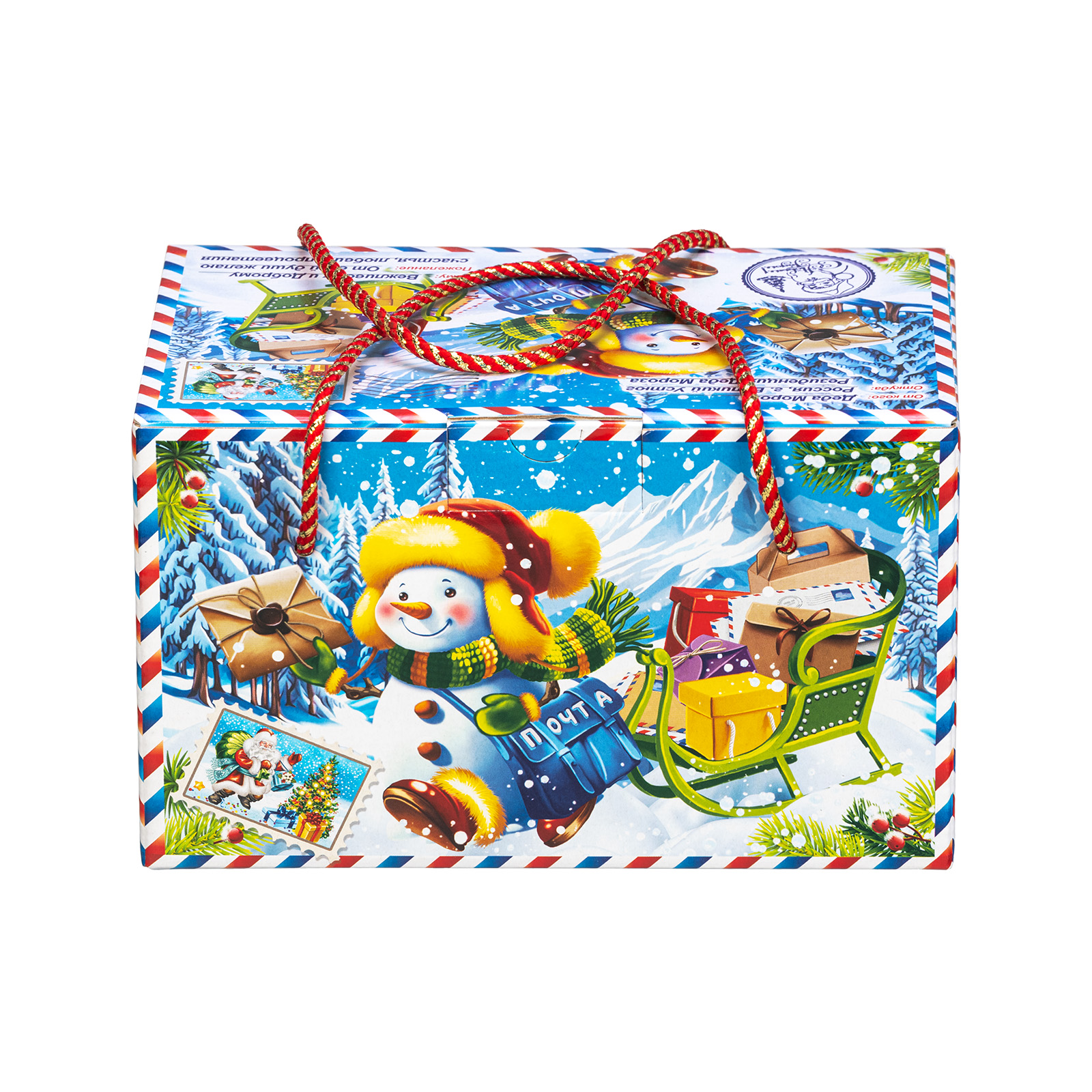 Интересный вариант новогоднего подарка – « Почтальон Снежкин». Он представлен в разделе Картон. Отлично подойдет на подарок в 2026 году с символом Лошадь. Внутри такого презента находится кондитерский набор весом 1000 граммов.