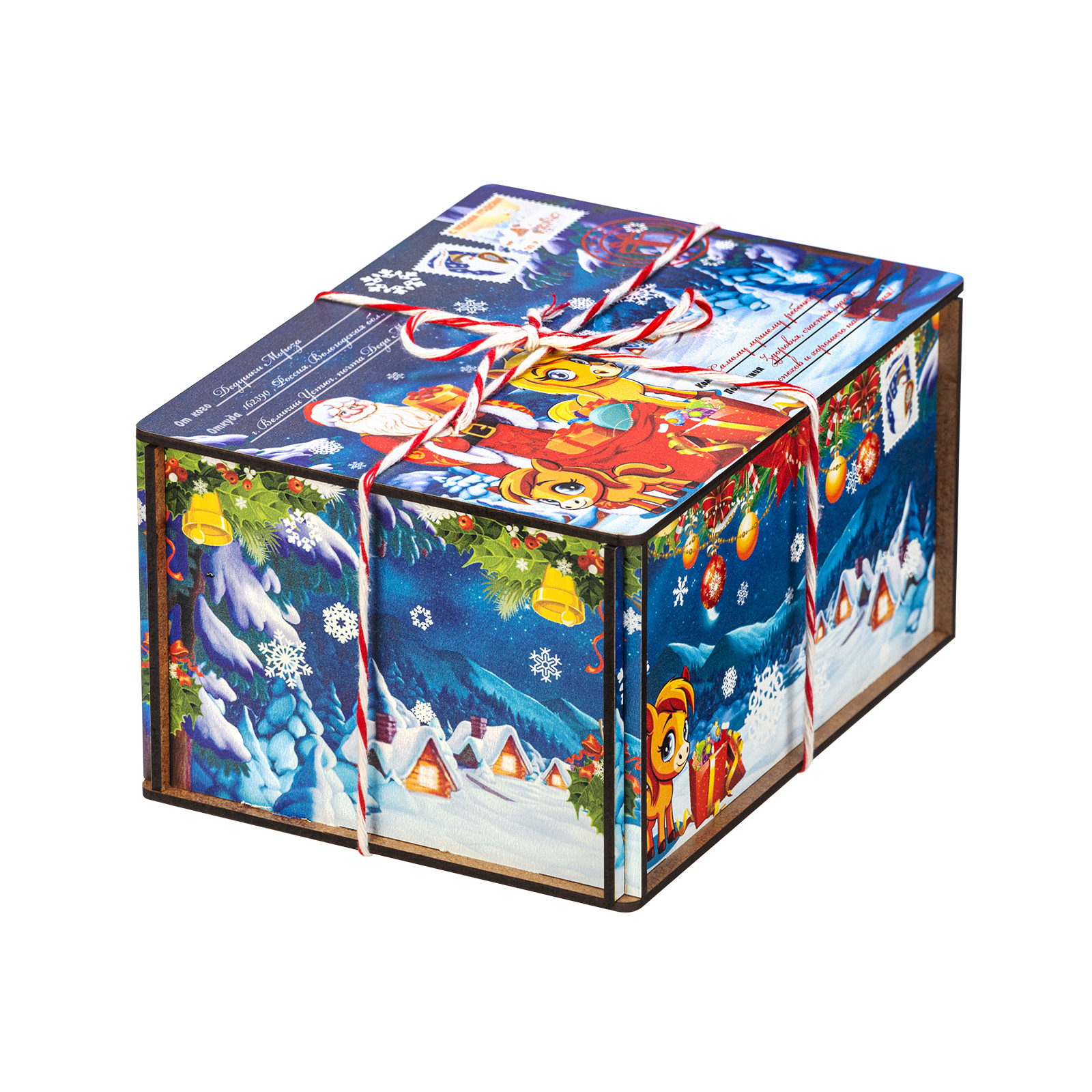 Интересный вариант новогоднего подарка – «Посылка от сказочной лошадки (Полезный состав)». Он представлен в разделе Дерево. Отлично подойдет на подарок в 2026 году с символом Лошадь. Внутри такого презента находится кондитерский набор весом 500 граммов.
